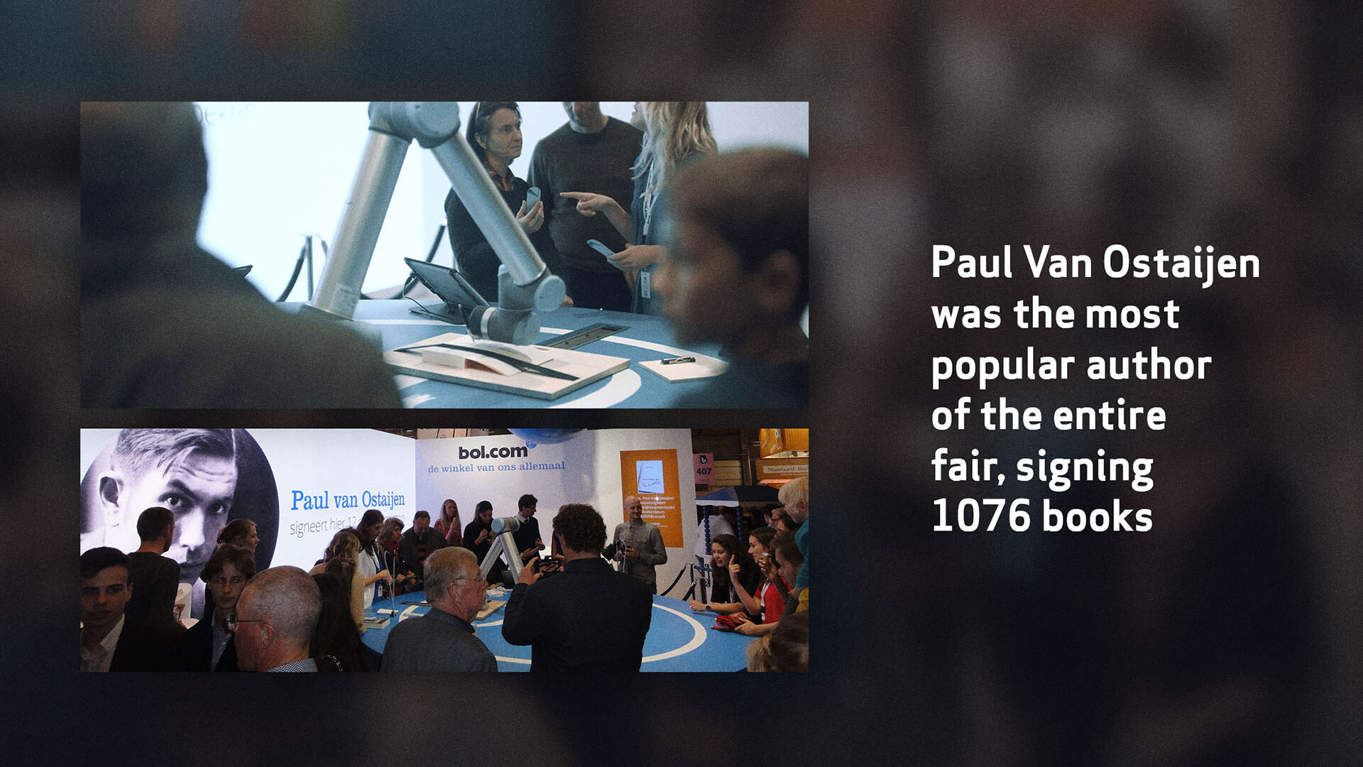 To create a pre-event buzz, LEWIS sent journalists and influencers a signed copy of Paul Van Ostaijen’s book. Within the book, a handwritten message by Van Ostaijen was included inviting them to witness the first-ever book signing robot at the Antwerp Book Fair. This resulted in an impressive media wave leading up to the event. Fair attendees queued for hours to receive their very own robot signed books.